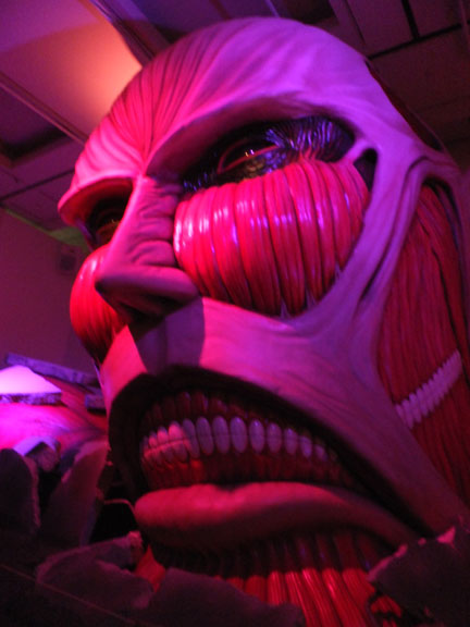 超大型巨人さん、実物大だと絵で見る以上にバケモノ感が際立っていますが、色んな角度からじっくり見ると鼻筋がスッと通って目の彫りが深くて、なかなかのイケメン造形です。