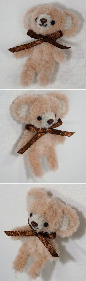 この写真のプチベアは、余ったピンクベージュ色のモールを使って、後頭部と耳の裏側のボリュームを足してあります。
