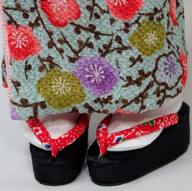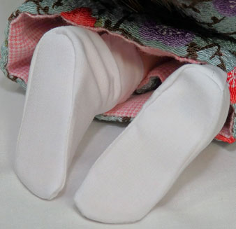 足袋はアゾン製のオビツ50用サイズを買ったハズなのですが、何故かゆるゆるのガバガバだったので自分で足にピッタリになるよう縫い詰めました。